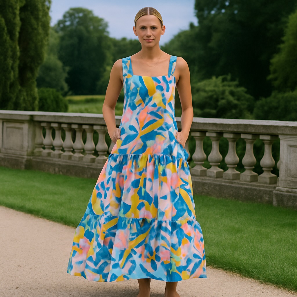 Pink Abstract Wide-Strap Maxi Dress – Vibrant Summer Vacation Style